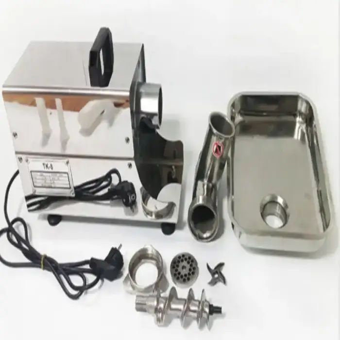 Regularly clean and dry removable parts after use, lubricate the shaft and cutting components with food-safe oil if recommended in the manual, sharpen or replace blades and plates as they dull, and periodically check fasteners and motor ventilation for debris.