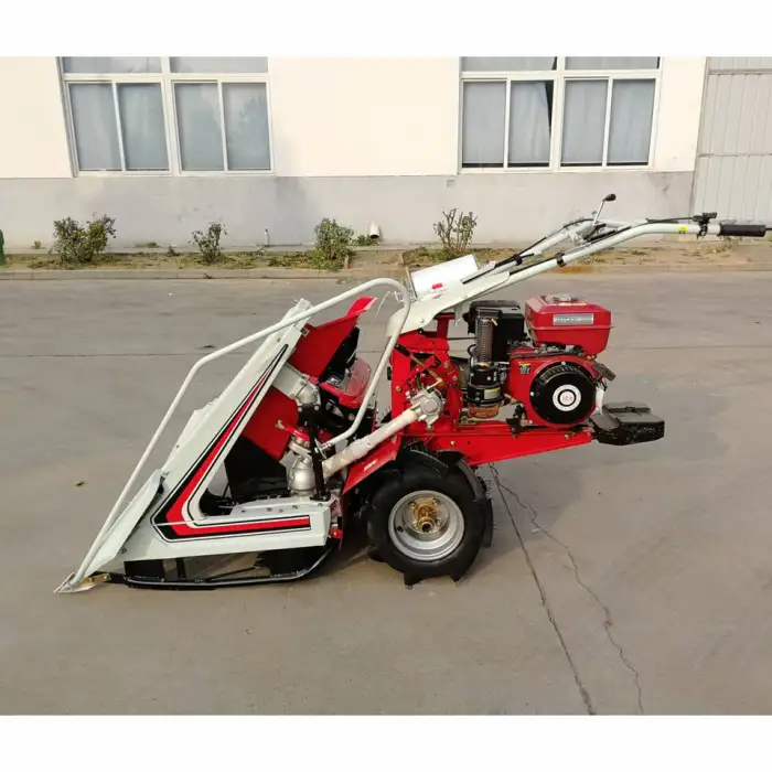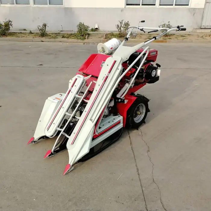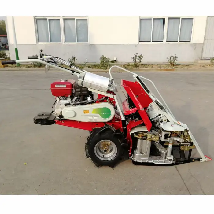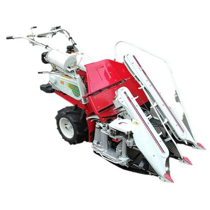 The machine is designed to efficiently harvest rice, wheat, and other grains.