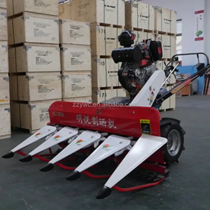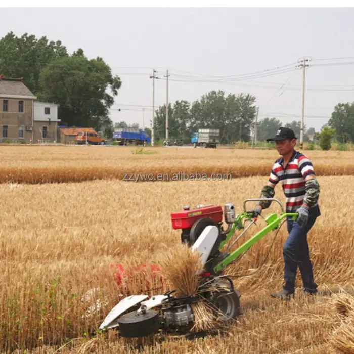 The Hand Walking Tractor Harvester is designed to cut and collect paddy, wheat, rice, grass, alfalfa, and wormwood.