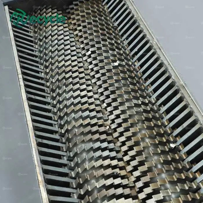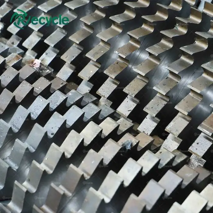 The shredder uses heavy-duty, wear-resistant cutter blades designed for metal and mixed waste. Blade life depends on material abrasiveness, feed practice and operating hours. Blades are replaceable and often reversible. We recommend a maintenance plan and can supply spare blades and wear parts.