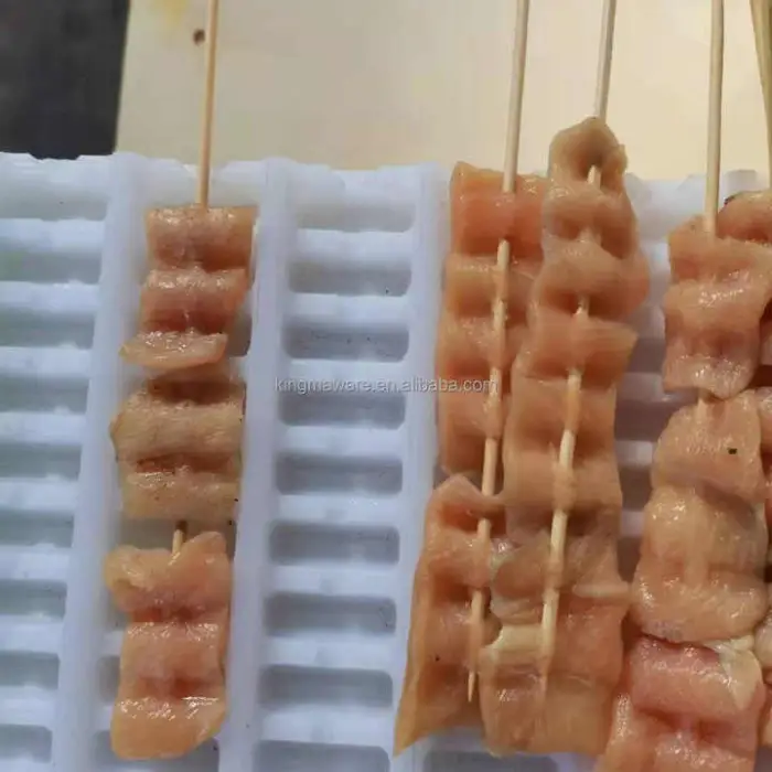 You can use fresh beef, chicken, and pork with the Heavy Duty Meat Skewer Machine.