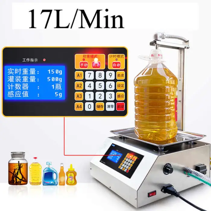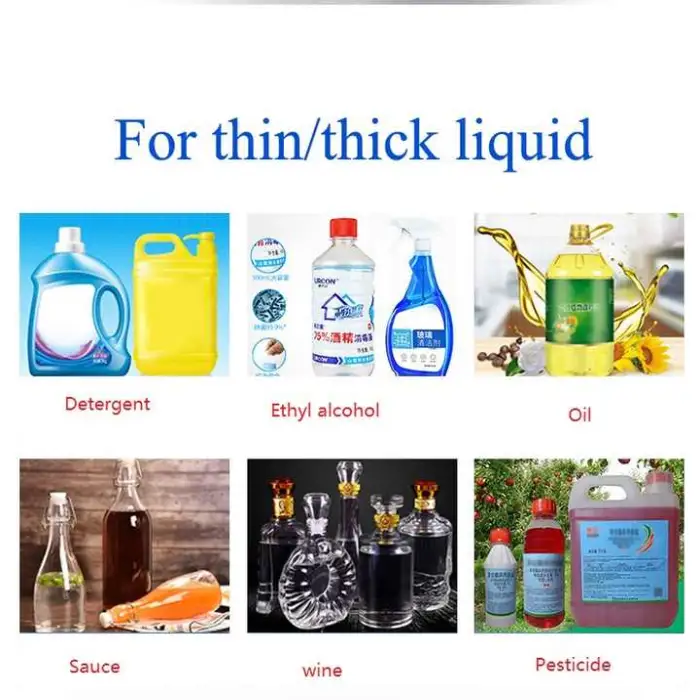 This machine is ideal for filling lubricating oils, dispensing vinegar and wine, packaging beverages like juice and milk, and filling chemical products.