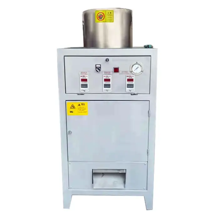 The machine is constructed from high-quality stainless steel for durability and hygiene.