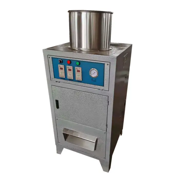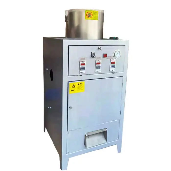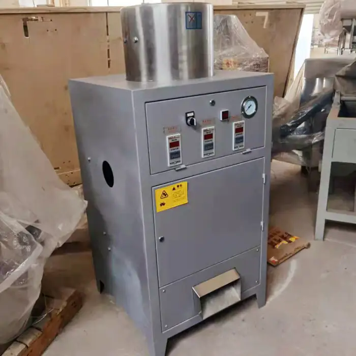 The machine is designed specifically to peel without damaging the garlic or cashew nuts, ensuring quality and efficiency.