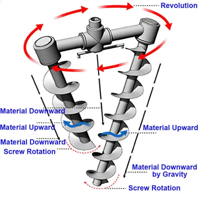 10. How does the double screw design enhance mixing efficiency?