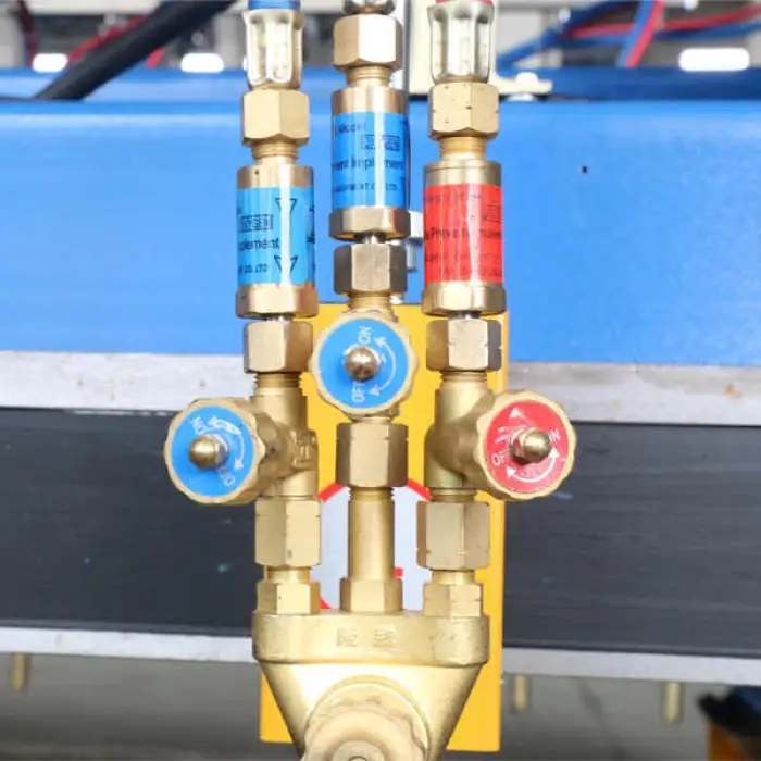 The machine supports oxygen with fuel gases such as propane or acetylene, as well as other cutting gases per customer requirements. Proper gas regulators and supply infrastructure are required.