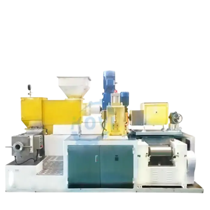The machine's power specification is designed for a small soap extruder.