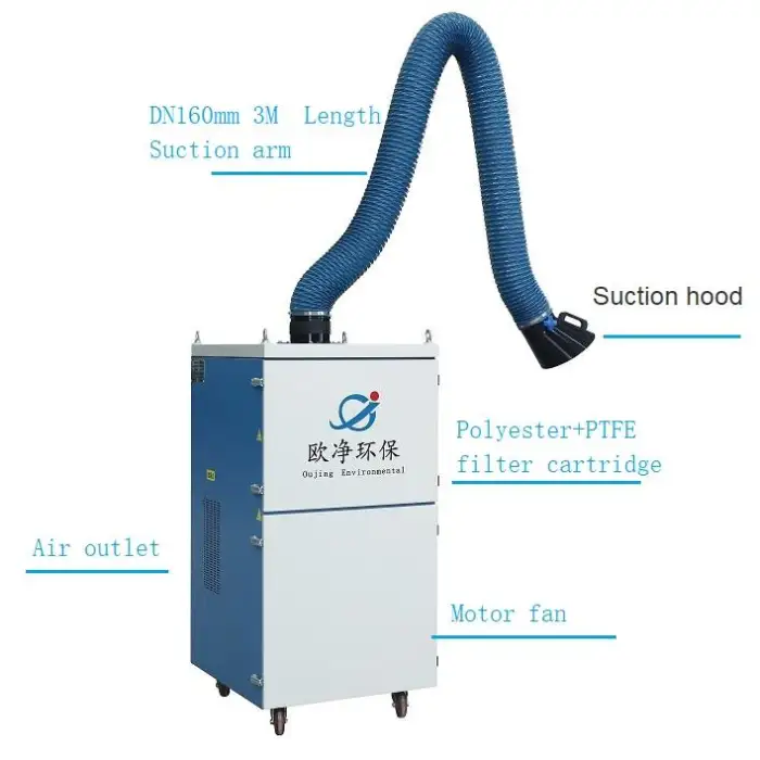 It is designed to effectively collect smoke and dust generated from welding, grinding, and laser cutting processes.