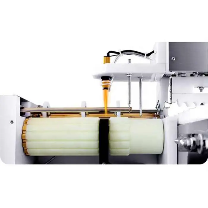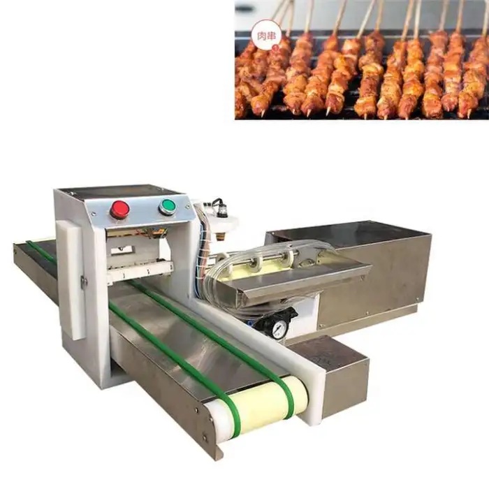 The automatic operation allows for fast and consistent skewer making, reducing labor and time in food preparation.