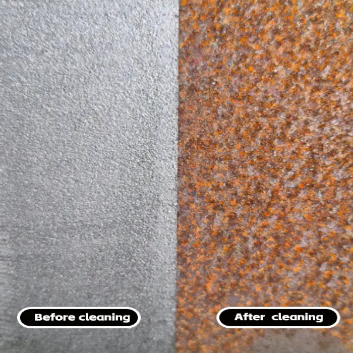 The cleaning speed of this equipment ranges from 5 to 15 m²/h, depending on the type of material and the thickness of the rust or oxide layer.
