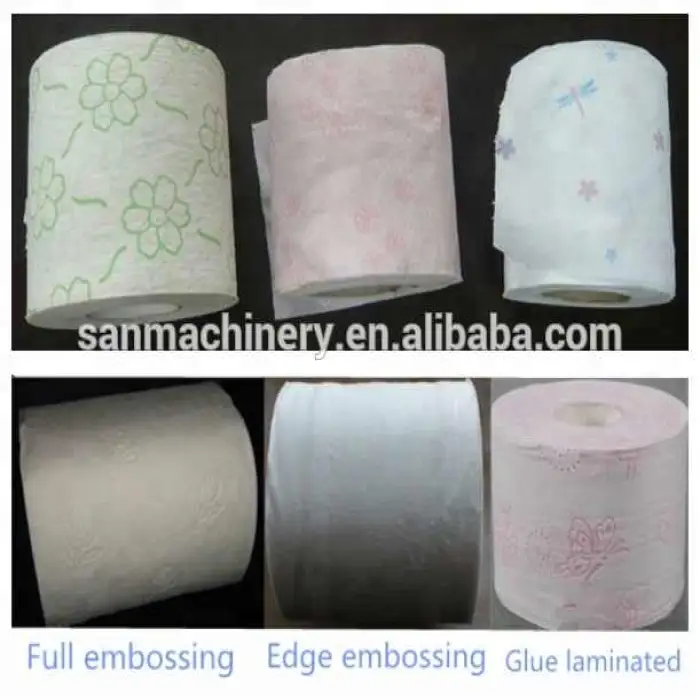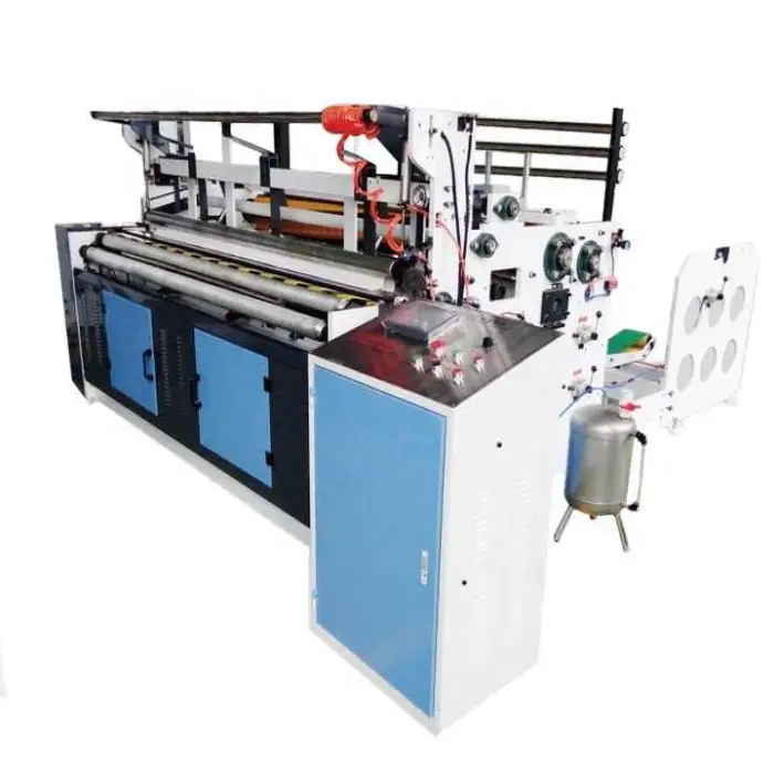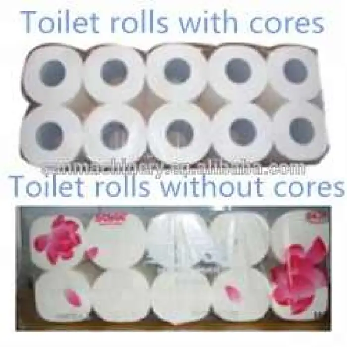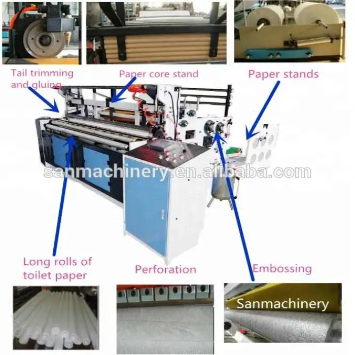 The machine is designed for processing paper, specifically for manufacturing toilet tissue rolls.