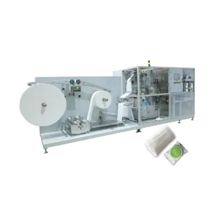 The machine is designed to work with compressed towel materials suitable for disposable products.