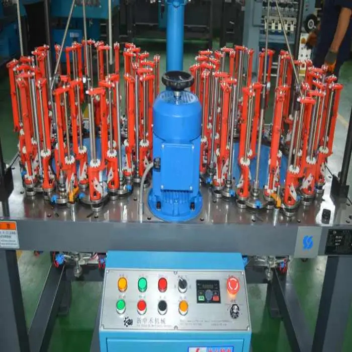 The machine is versatile and can be used with various types of yarns and fabrics, suitable for different braiding applications.