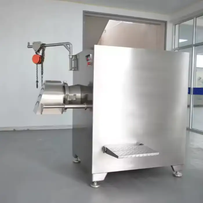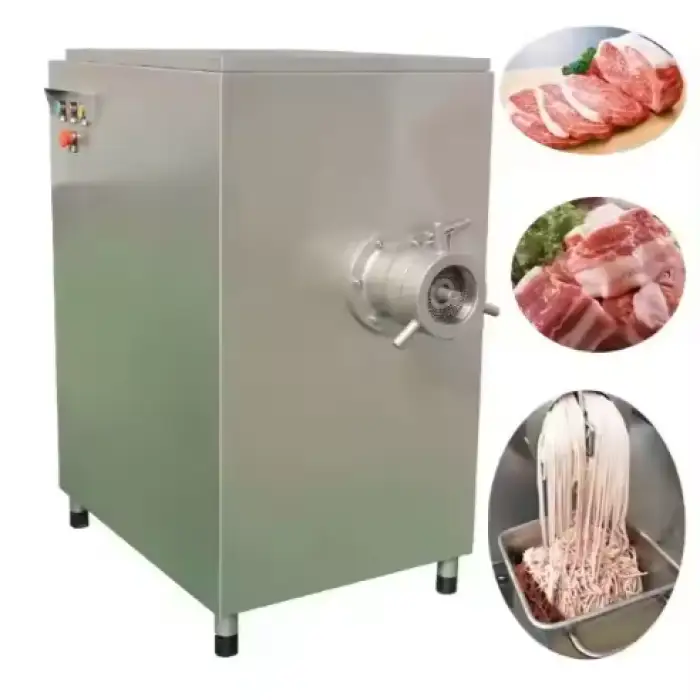 Industrial meat grinders produce significant noise and some vibration during operation. Noise level depends on load and cutting configuration. Use appropriate hearing protection for operators and ensure the unit is mounted on a stable foundation to minimize vibration transmission.