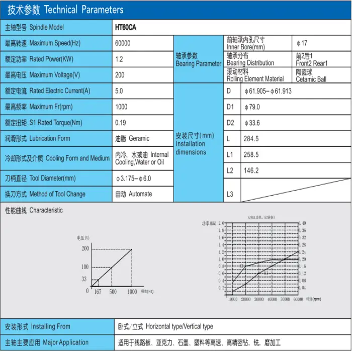 The spindle's maximum speed of 60000 RPM combined with its durable construction makes it ideal for high-speed operations, delivering excellent performance and precision.