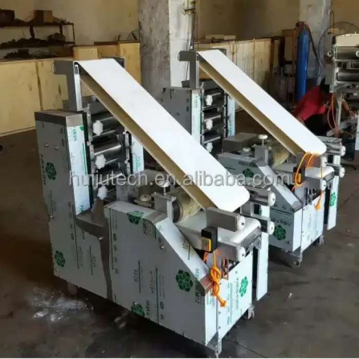 The primary output product of the HJ-JZP12 machine is dumpling skins and wonton wrappers.