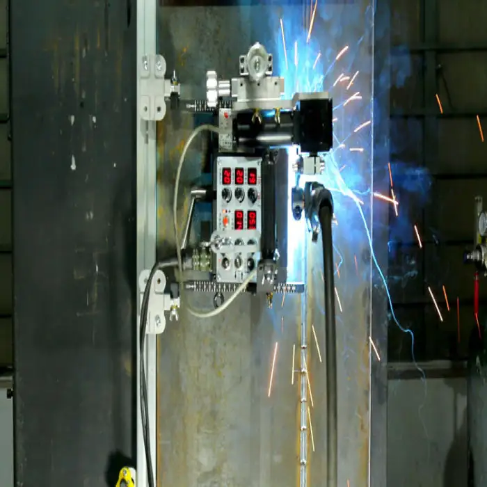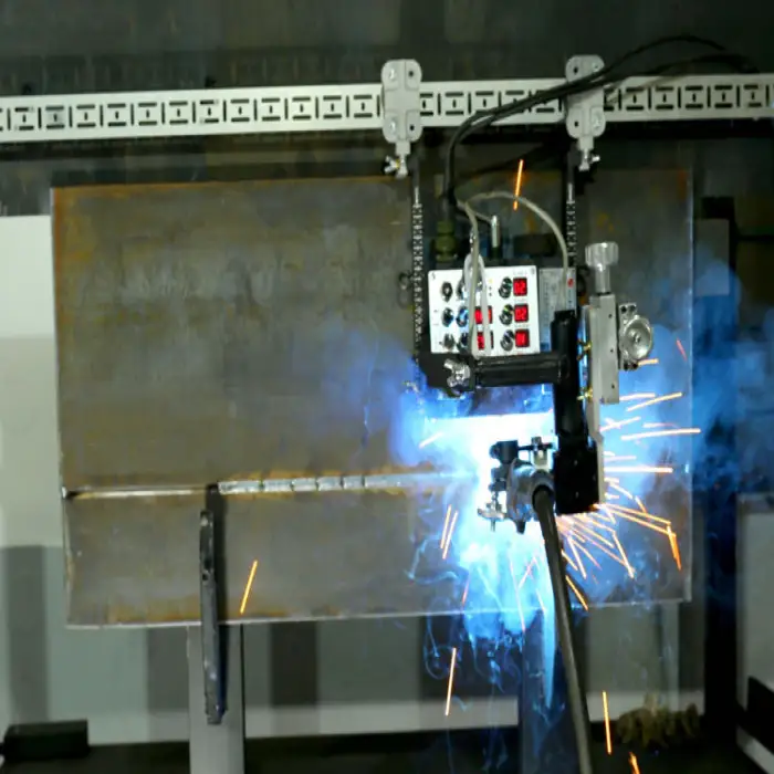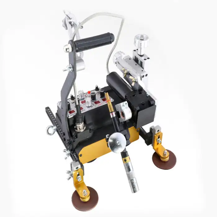 The magnetic guide rail allows for easy positioning and stability of the welding carriage during operation.