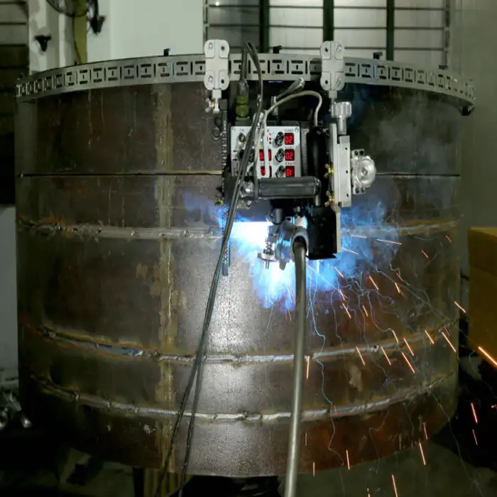 The HK-7W is designed for various welding tasks, including tank fabrication, pipe welding, metal fabrication works, and automated welding processes.