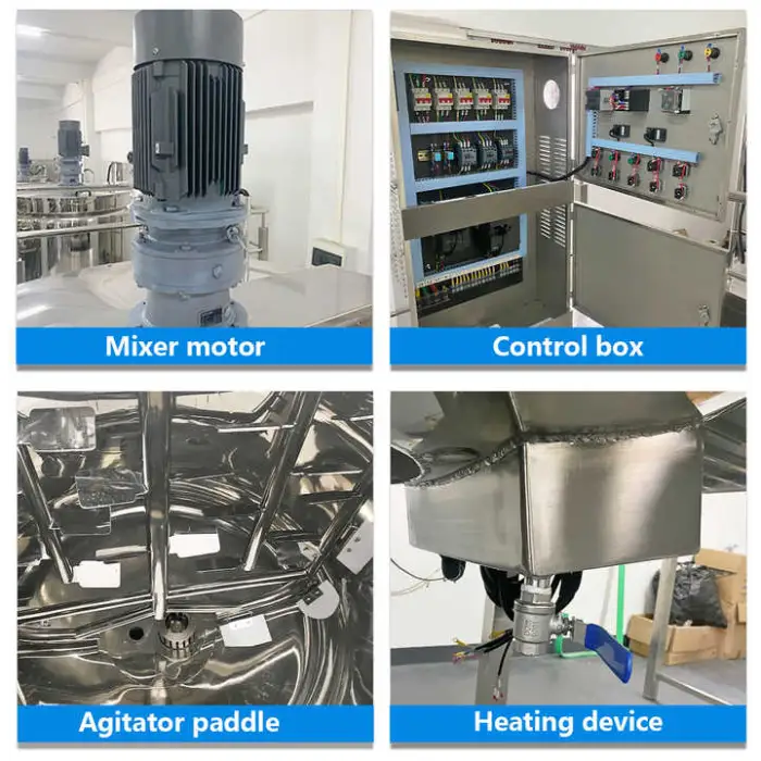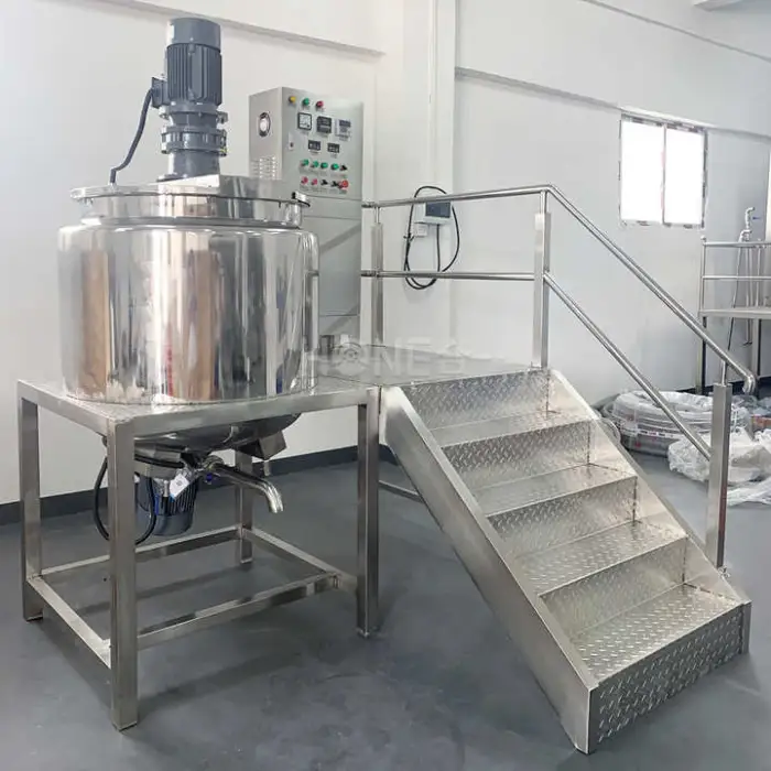 The high shear homogenizer facilitates smooth mixing by rapidly blending ingredients, ensuring a uniform consistency in the final product.