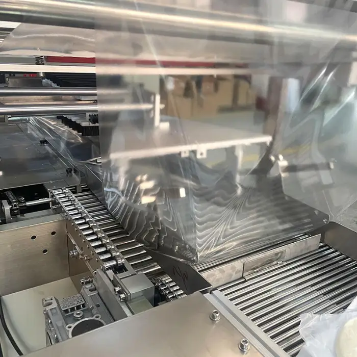The machine's efficient wrapping process helps to keep products fresh and secure by protecting them from external elements.