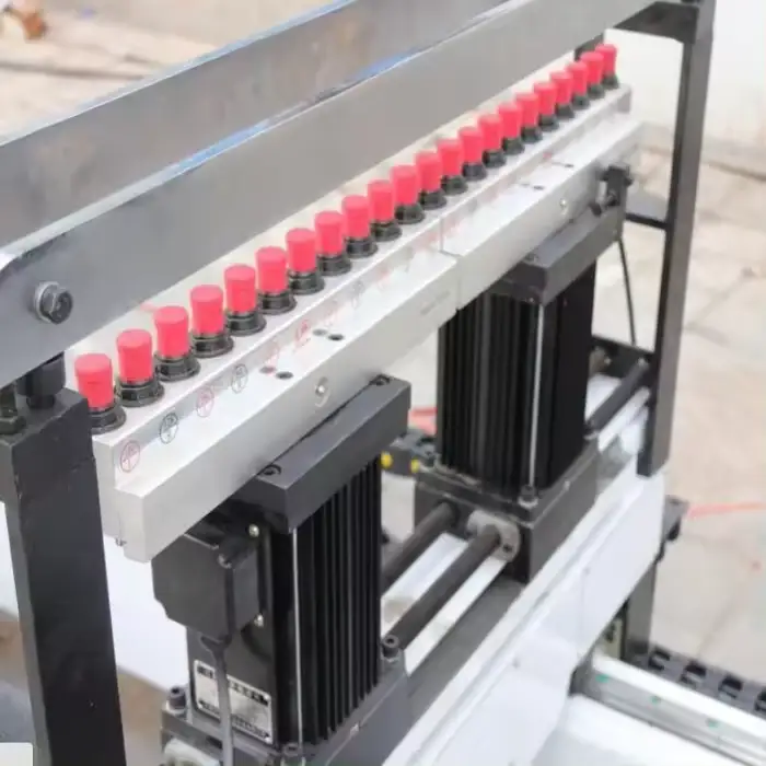 The machine has a power requirement of 6 kW and an overall power of 1.5 kW for each of the four spindles.