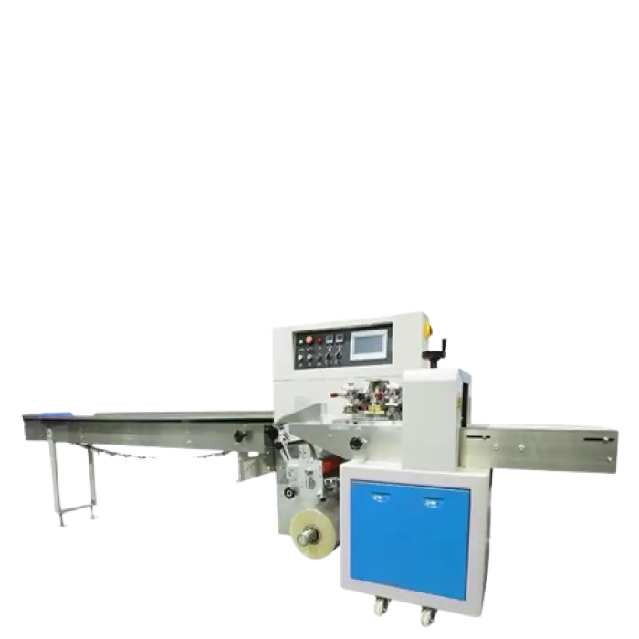 The machine offers multiple functions including filling, wrapping, sealing, counting, and optional labeling or weight measurement.