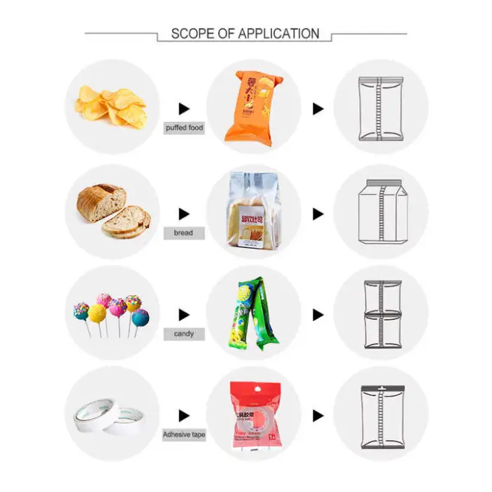 Industries such as food and beverage, commodity packaging, chemical products, machinery and hardware, and apparel can all benefit from this machine.