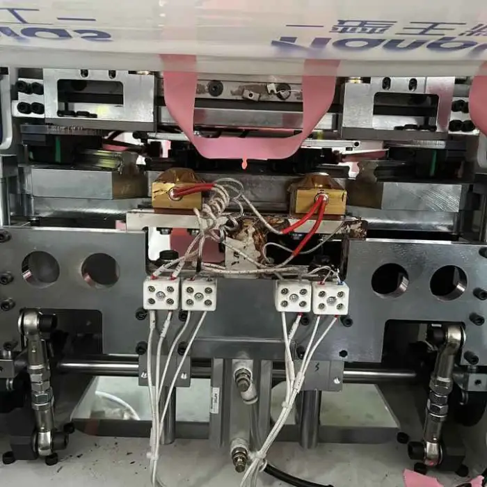 Regular maintenance includes cleaning, inspection of heaters/sealing bars, lubrication of bearings, checking drive belts and periodic PLC/servo checks. Recommended spare parts include heating elements/sealing wires, blades/knives, bearings, belts and common electrical components. Request a manufacturer maintenance schedule and spare-parts list.