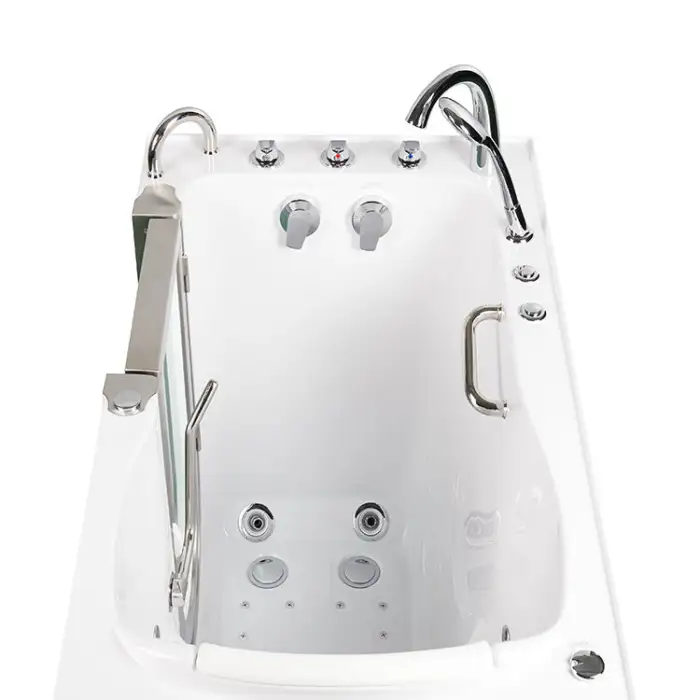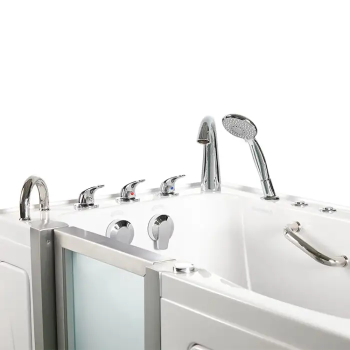 The bathtub comes with a multifunction shower head that allows for a variety of water experiences.