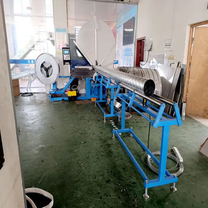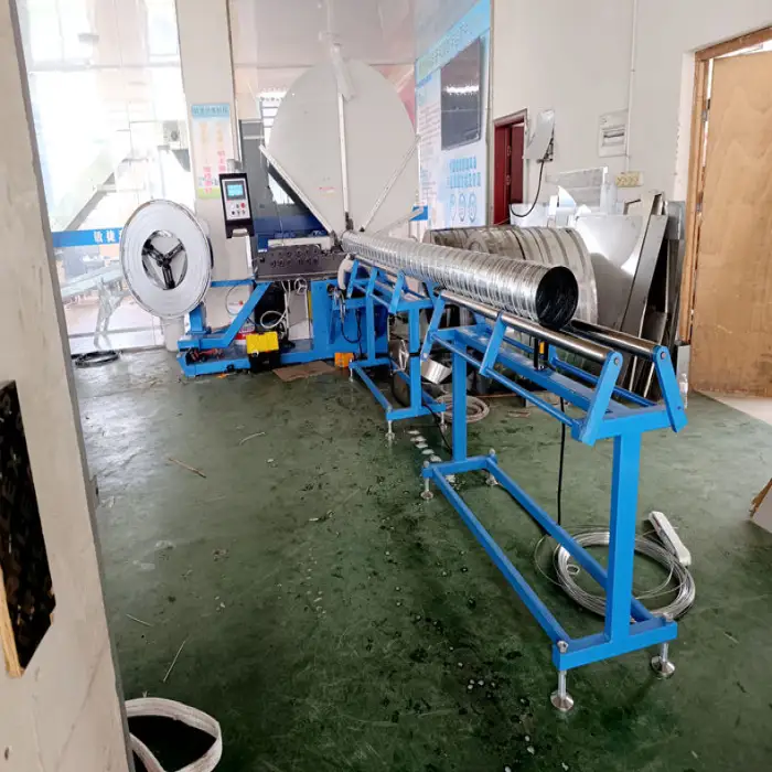 The machine is designed for efficient production of high-quality spiral ducts, streamlining the duct manufacturing process.