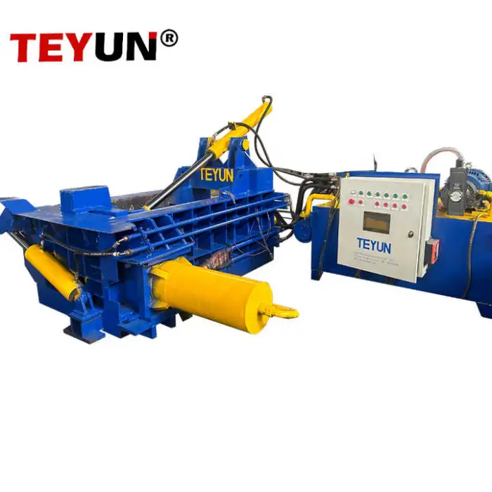 The TEYUN Y81-1000 Hydraulic Metal Baler compresses scrap metal (aluminum, brass, copper, carbon steel, stainless steel, alloys) into dense bales to reduce volume for easier storage, transport and recycling.