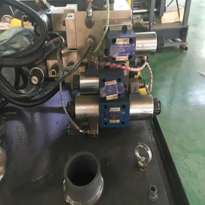 The hydraulic valve is from Rexroth, and the electrical components are from Schneider.