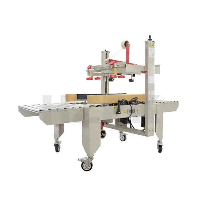 The machine is fully automatic and designed for simple operation with minimal supervision. Typical use requires feeding cartons and occasional tape replacement; basic operator training is recommended.