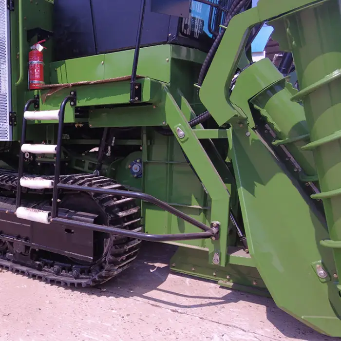This machine is suitable for harvesting sugarcane in large fields and can be used effectively on various terrains.