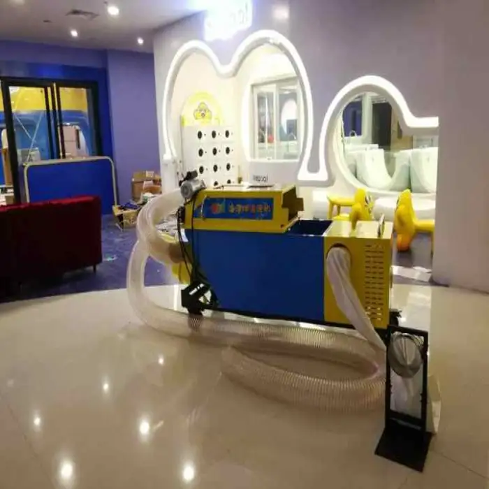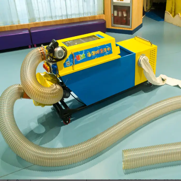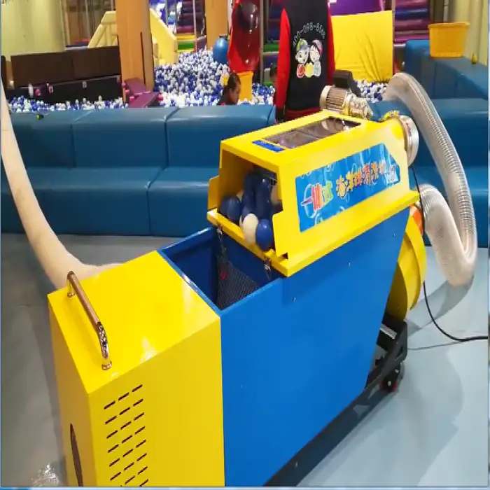 It is an automated machine designed to clean and air-dry plastic balls used in ball pools. It uses an immersion/soak cleaning method with a powerful 2500W motor and high throughput to sanitize balls quickly for indoor playgrounds, daycares, event rentals and amusement centers.