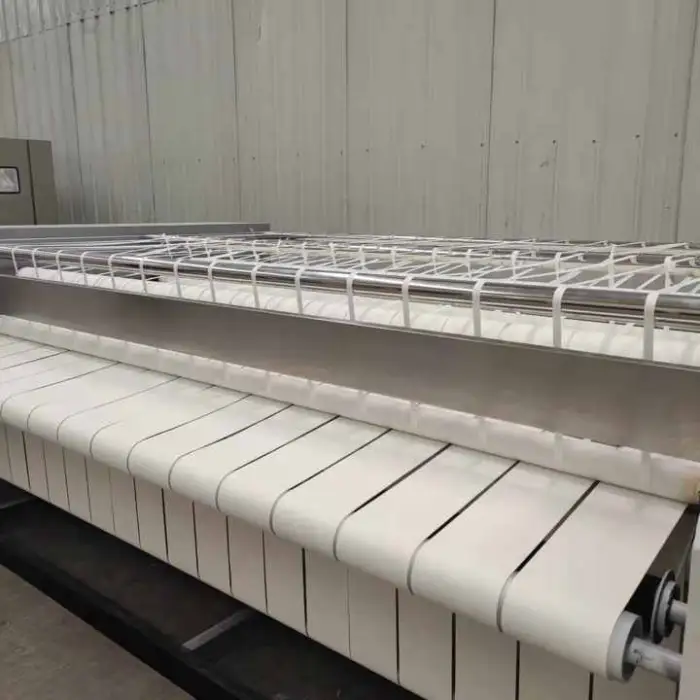 It is a commercial flatwork ironer and automatic folding machine designed to press, sterilize, remove wrinkles from, and fold large bed sheets and quilt covers for hotels, hospitals, laundries and event services.