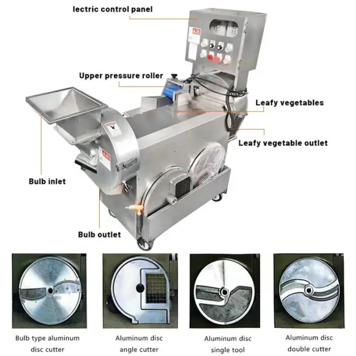 The machine allows for a variety of customizable cutting shapes, enabling users to create different styles of slices, dices, and chips.