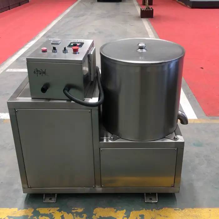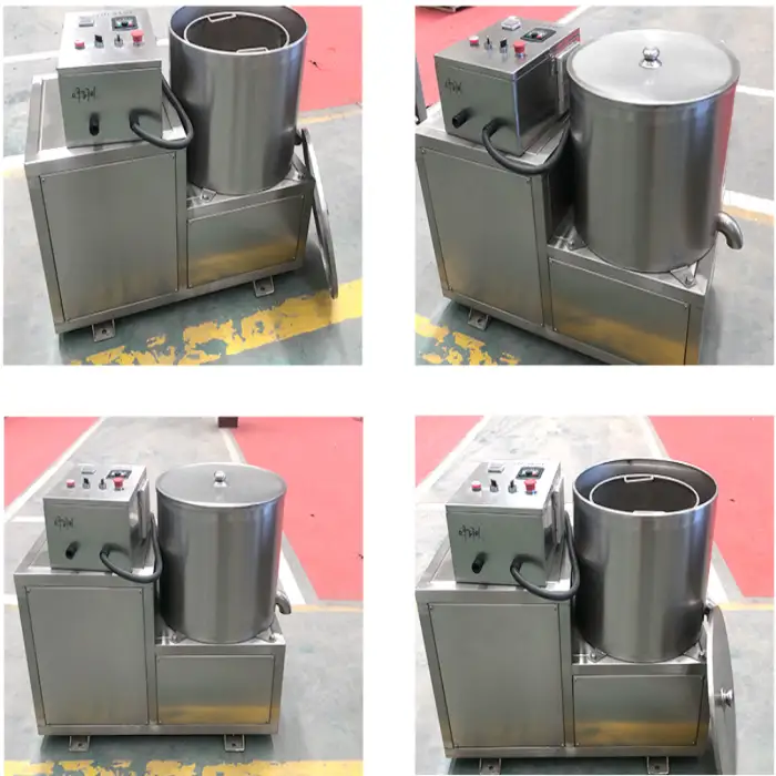 Typical operation: preheat/fry product as usual, place fried product onto the dewatering conveyor/drum, start automatic cycle to spin/centrifuge or convey while removing oil and moisture, collect drained oil and discharge crispy product. Follow the user manual for detailed operating instructions and safety steps.
