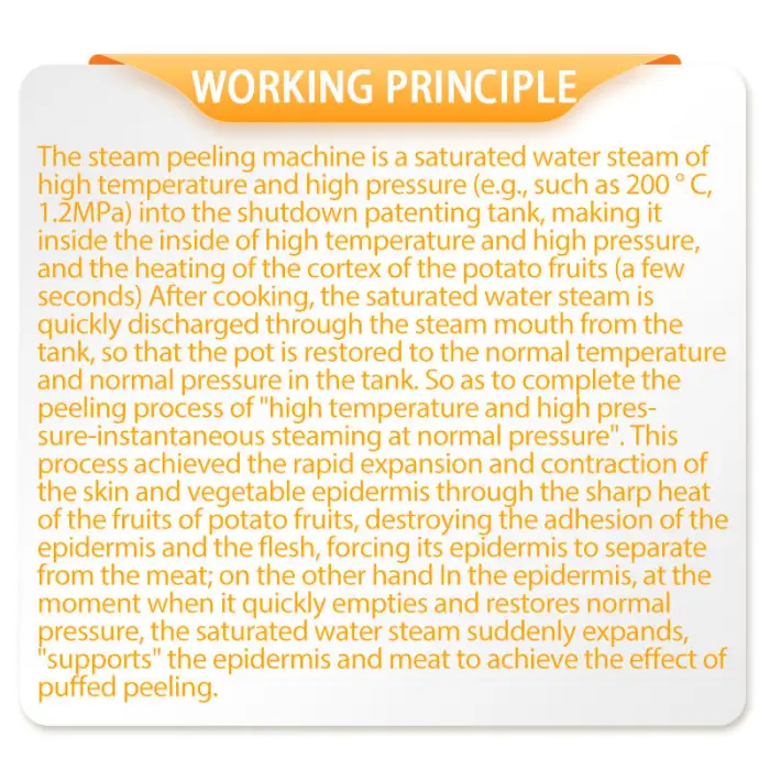 The steam peeling technology utilizes steam to loosen the skin of the fruits, making the peeling process quick and efficient.
