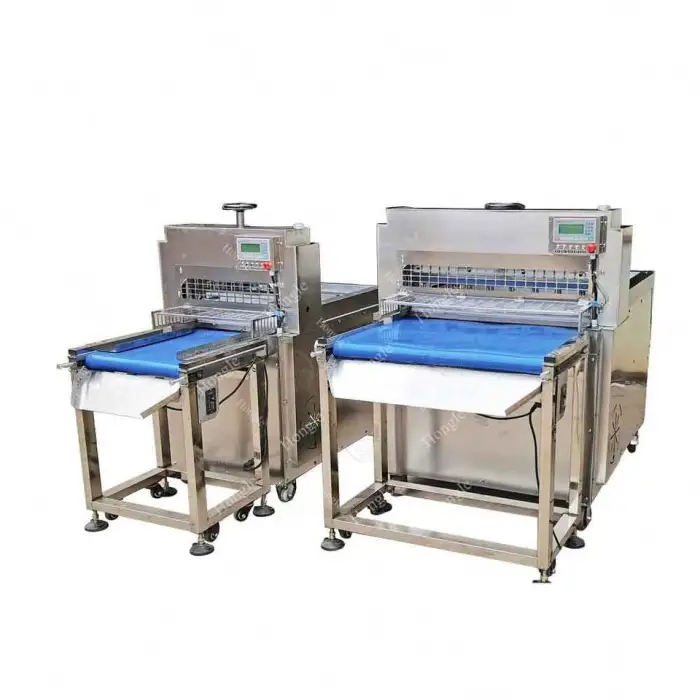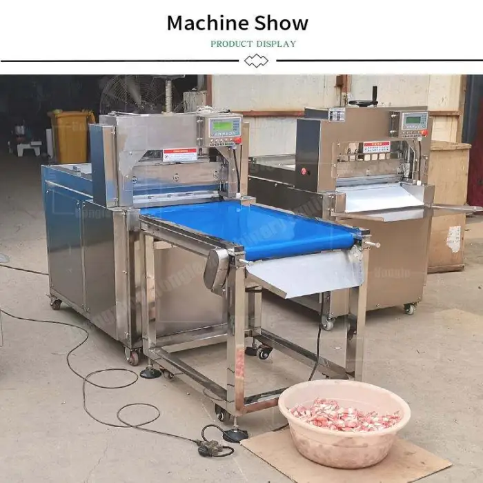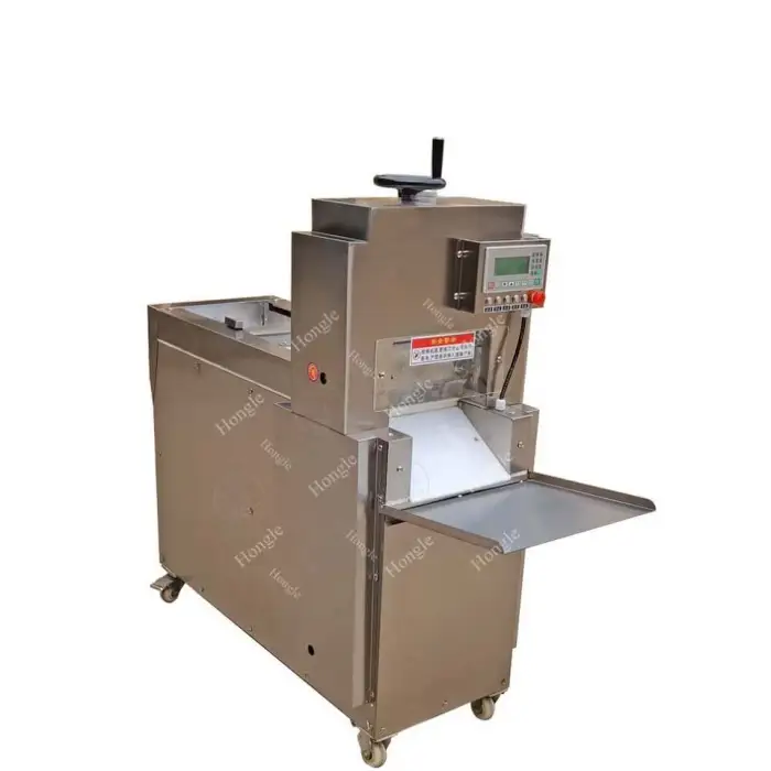 The Industrial Cheese Slice Cutting Extra Thin Chicken Breast Bacon Bread Slicing Machine is designed to slice frozen meats, including chicken, bacon, and other meats.