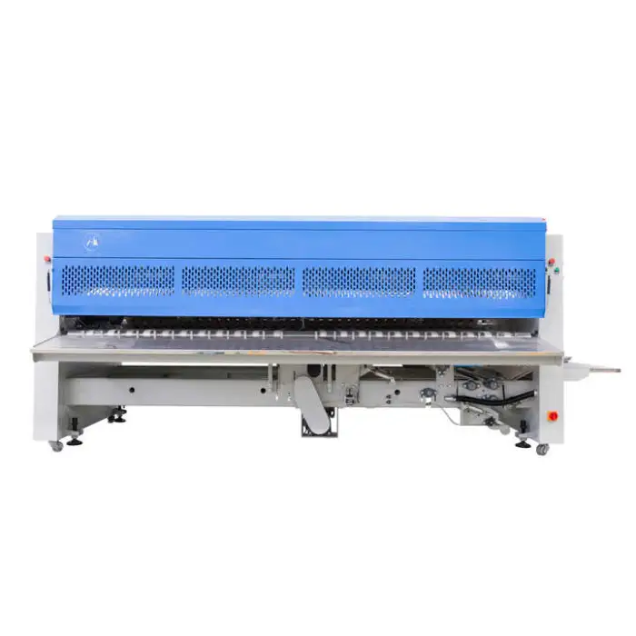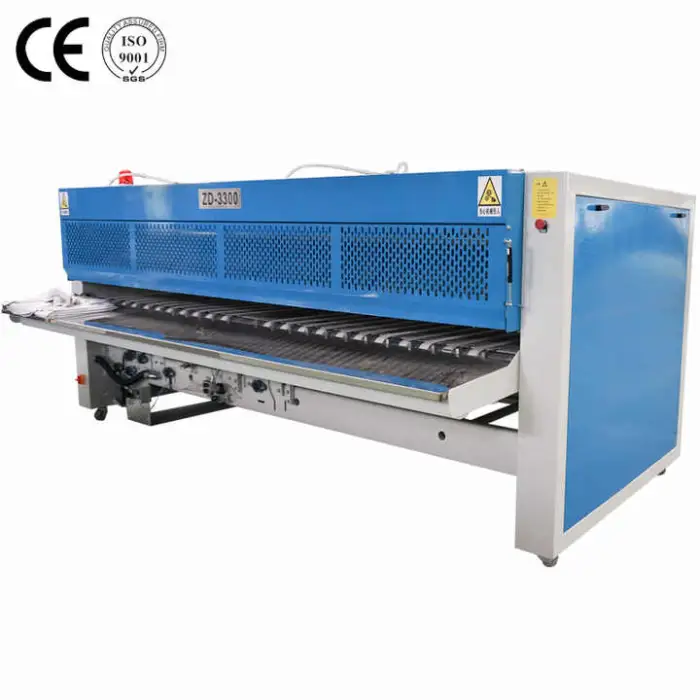 This is an industrial bedsheet folding machine designed to automate and speed up the folding of bedsheets in large-scale laundry operations such as commercial laundries, hotels, hospitals, garment factories and dry cleaners.