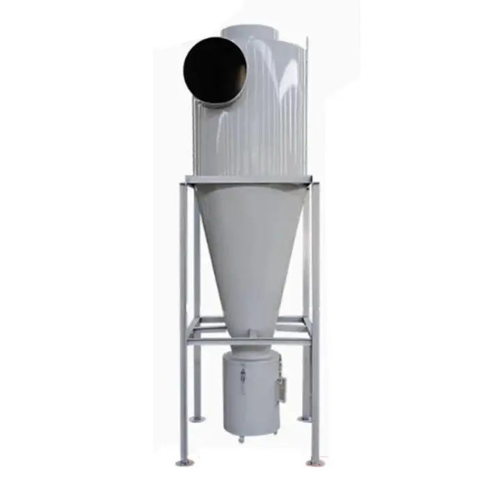 The Industrial Double Cyclone Dust Collector features side loading installation for easy setup in various workshop environments.