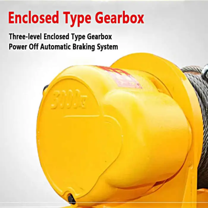 The Industrial Electric Lifting Winch operates on an electric power source, specifically using a DC24V supply.