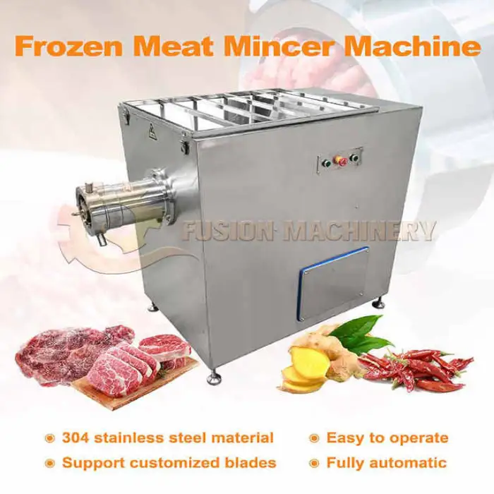 Yes — the machine is designed for fresh and frozen meat and can handle meat with bones and whole chicken. For best performance, follow supplier guidelines about degree of freezing and bone size.
