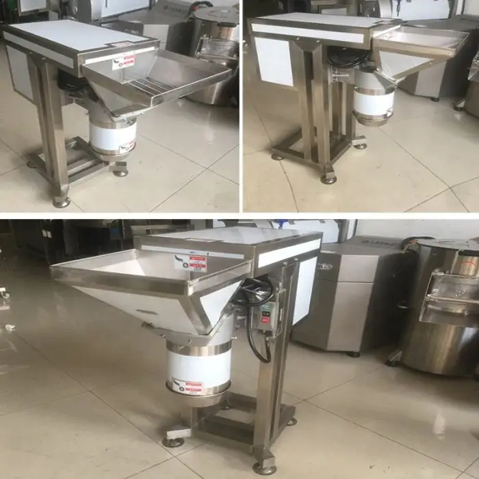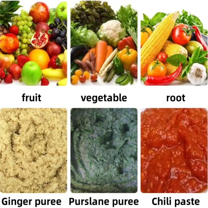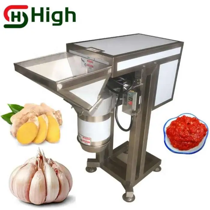 This machine can crush garlic, chop leafy vegetables, and grind peppers, making it versatile for various food processing tasks.