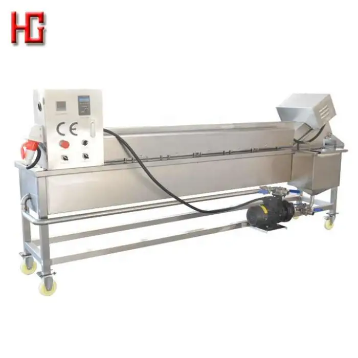 The continuous conveyor system allows for smooth operation and consistent cooking by moving food through the frying process without interruptions.