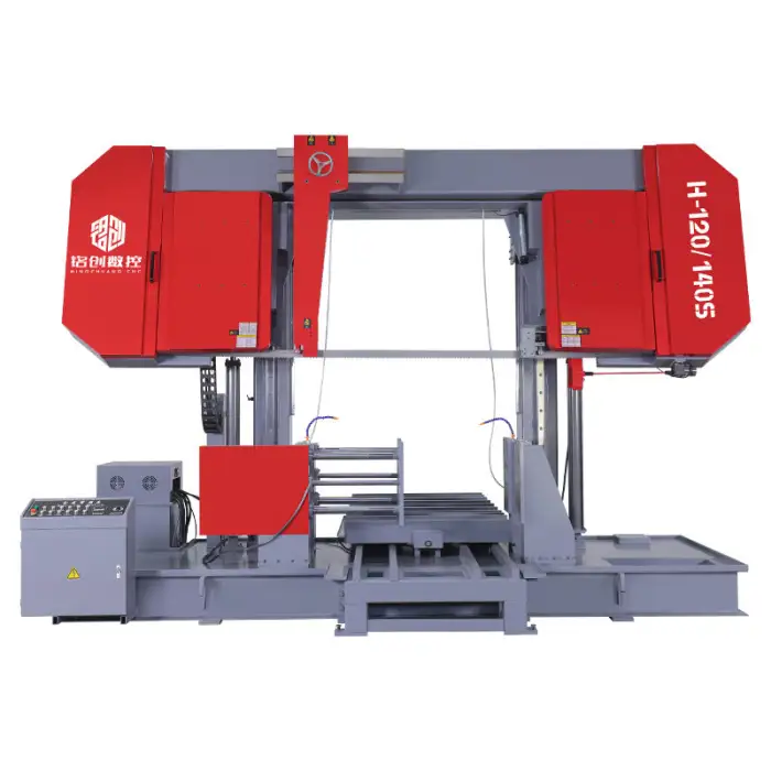 This machine is designed to cut through large metal workpieces, making it suitable for metalworking, construction, aerospace, and automotive applications.