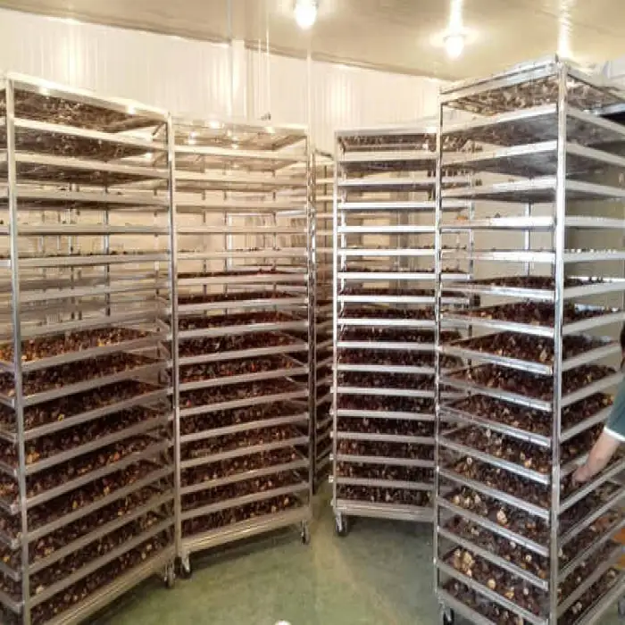 The machine features humidity control settings that can be adjusted from 5% to 99%, allowing for precise drying conditions.