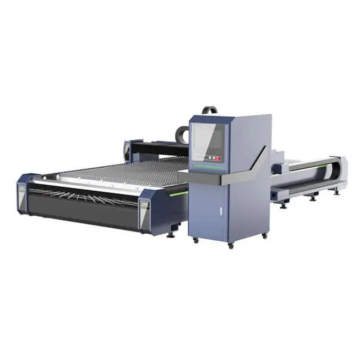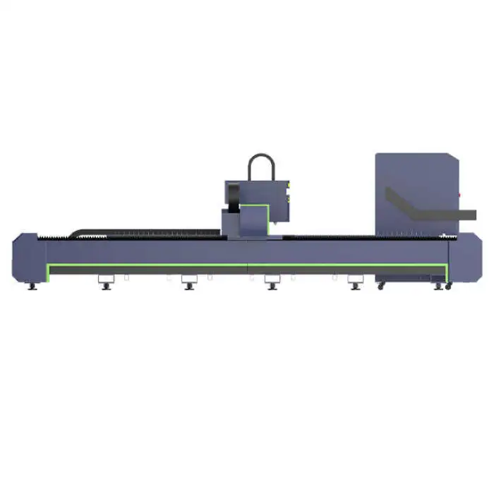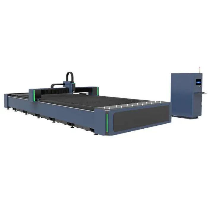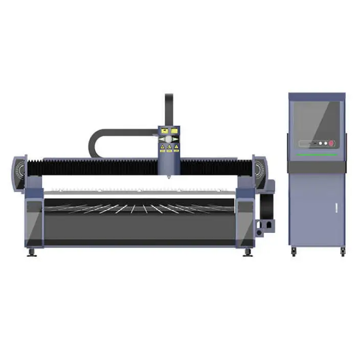 The Industrial Machinery Equipment Automatic Gantry Type Metal Laser Cutting Machine uses a fiber laser for efficient and precise cutting.