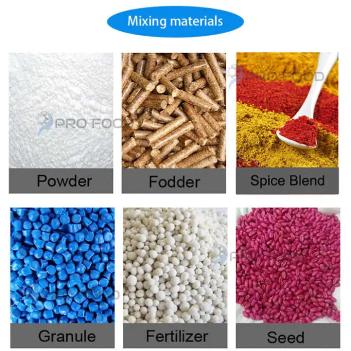 It is suitable for powders and granules across food (spices, flour blends), detergents, fertilizers, cosmetics, plastics additives and other powdered products where uniform blending is required.